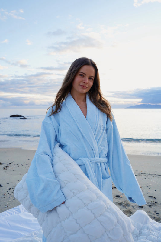 Powder blue Hibiscus towel Robe