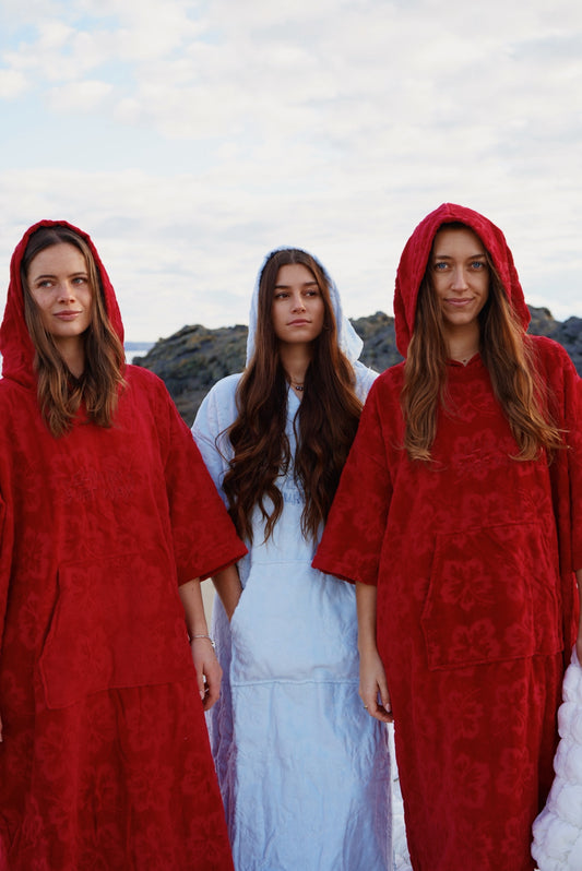 Cherry red Hibiscus towel Robe